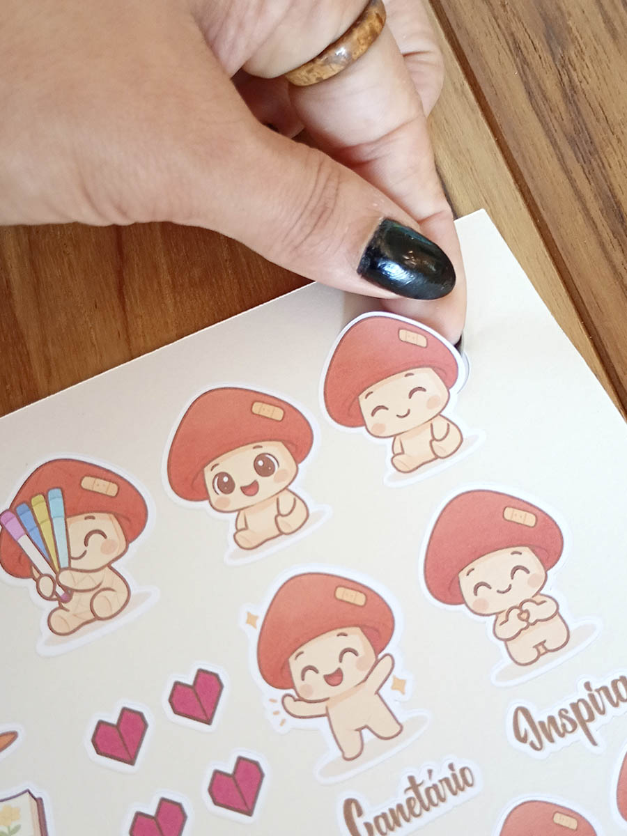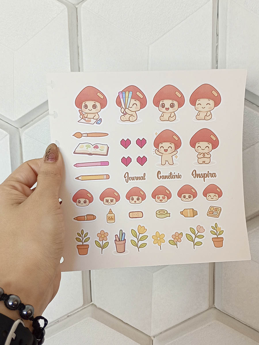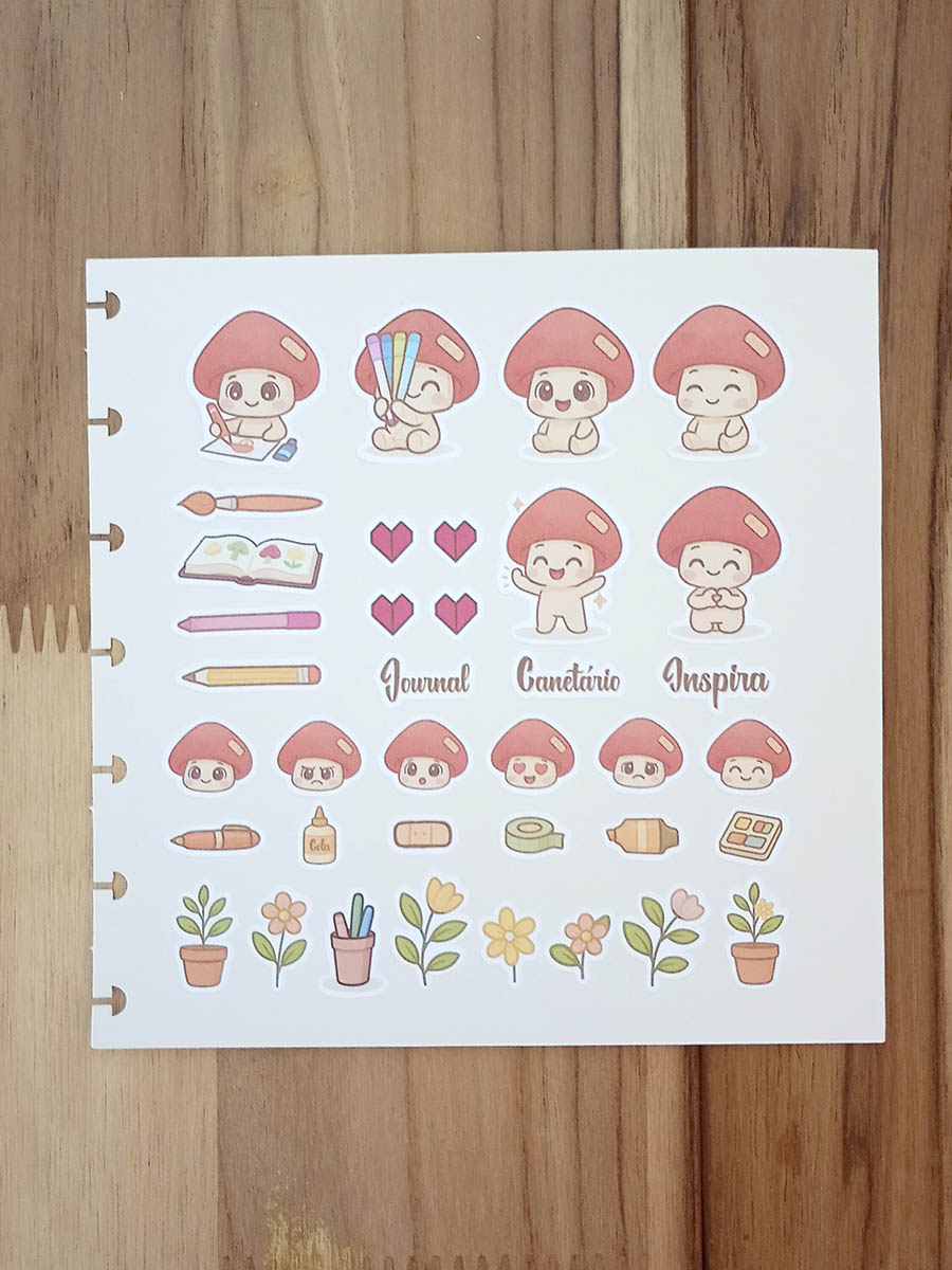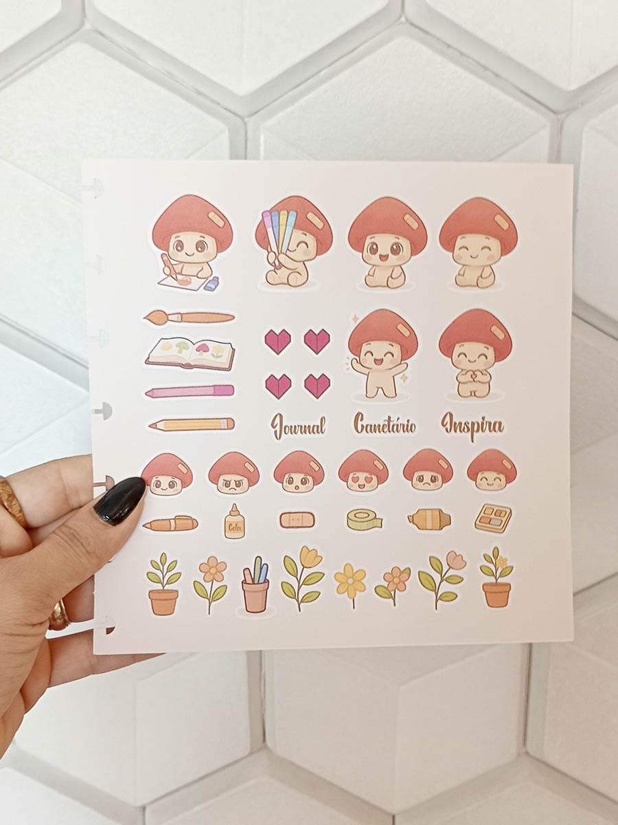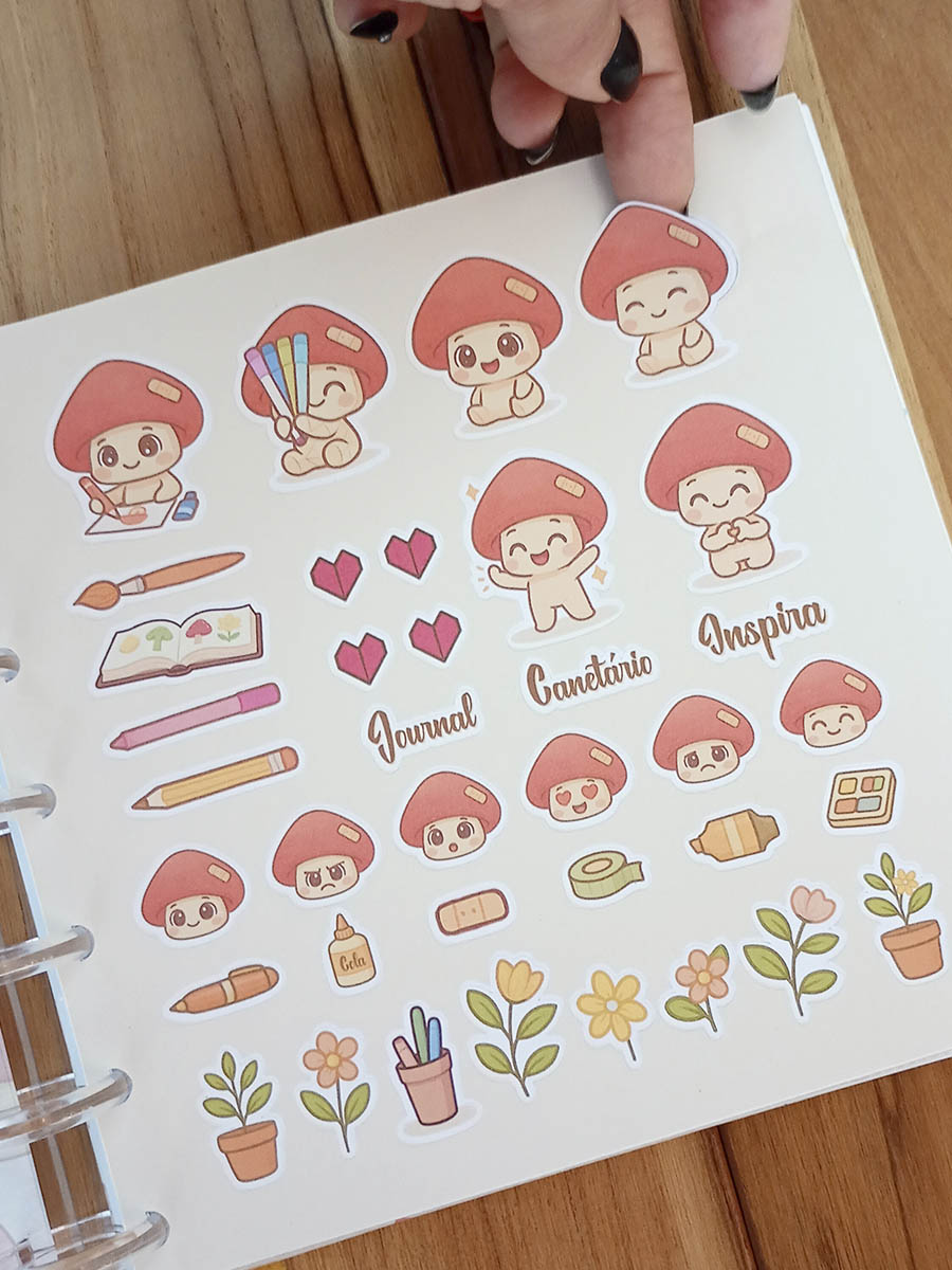 🌱 Traga a fofura do Cogumi para o seu dia! Nossa cartela de adesivos é perfeita para decorar o seu canetário, e de quebra, ainda pode trazer ainda mais fofura para seus planners, cadernos e onde mais sua criatividade quiser. Cada adesivo carrega o charme desse personagem querido, pronto para deixar suas páginas mais divertidas e especiais.