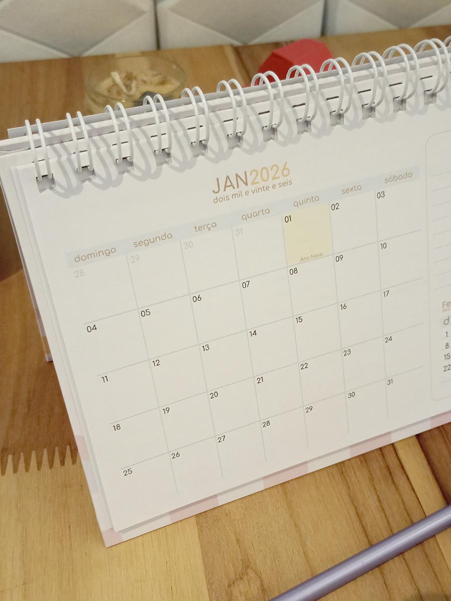 Feito à mão, com todo o cuidado para deixar seu ano mais leve, bonito e produtivo.
