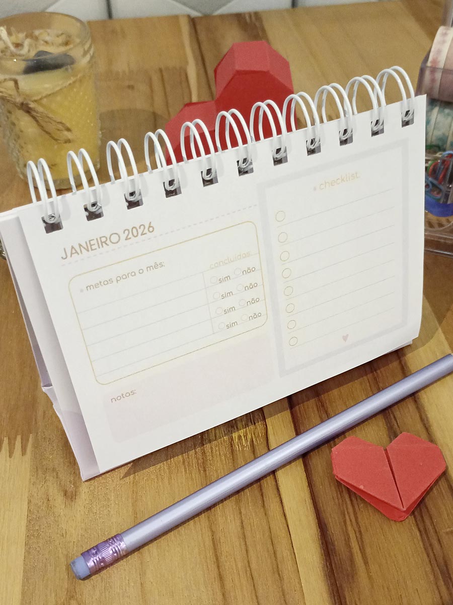 Feito à mão, com todo o cuidado para deixar seu ano mais leve, bonito e produtivo.