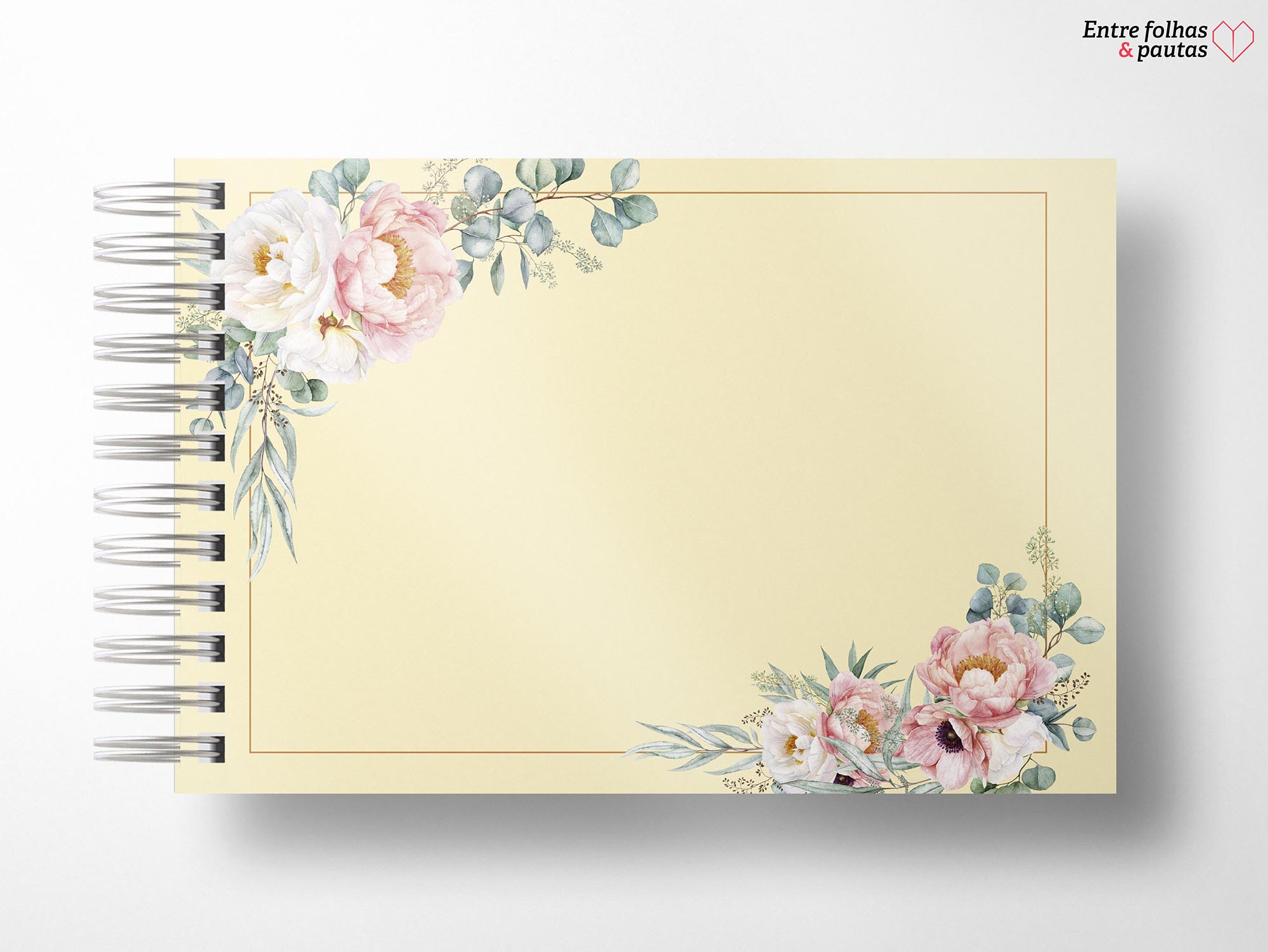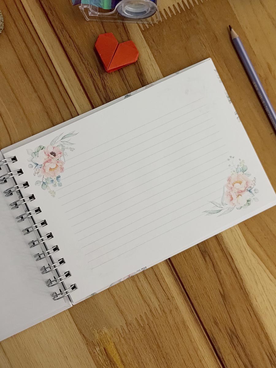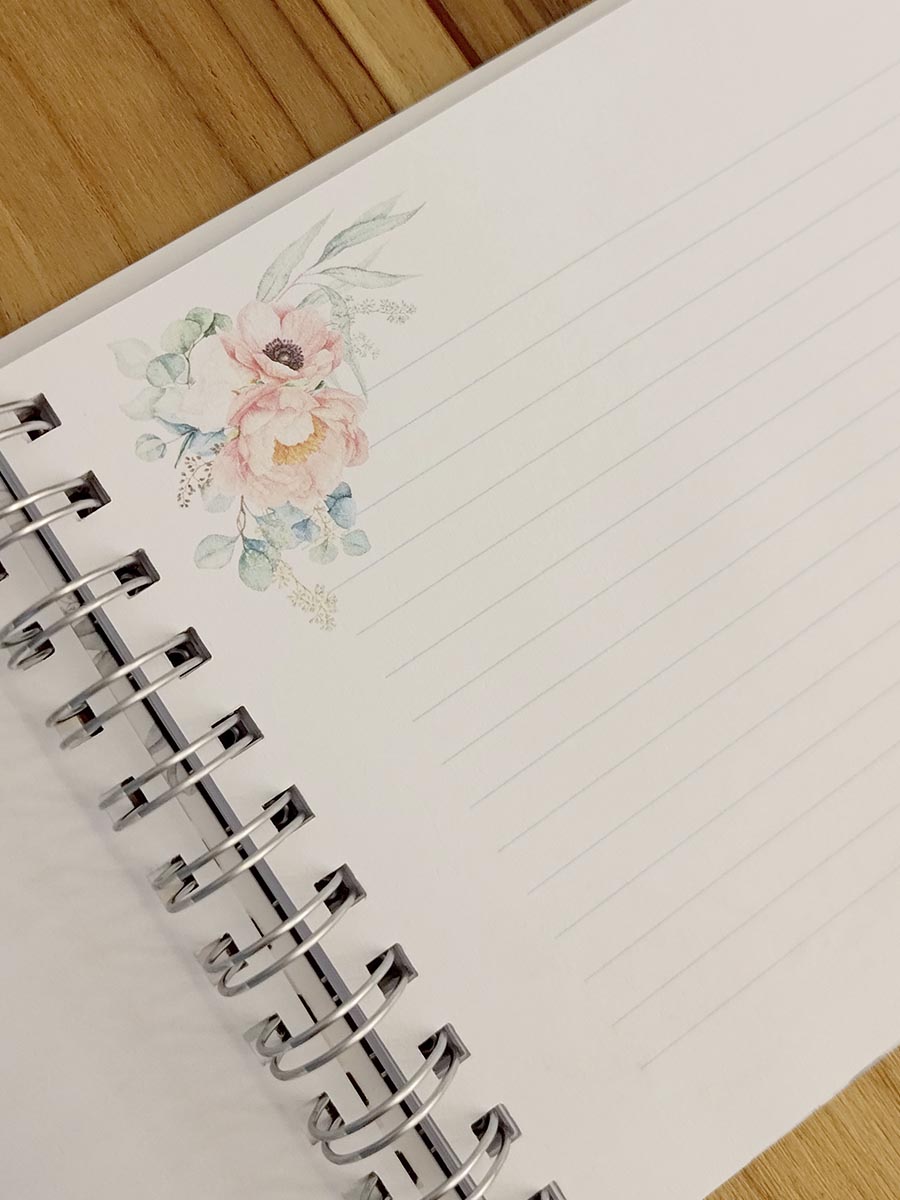 • Páginas com linhas simples e decoração floral