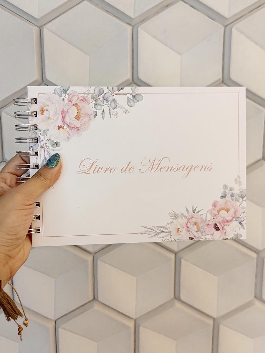 Coleção Amor que Floresce – Livro de mensagens nosso casamento personalizado