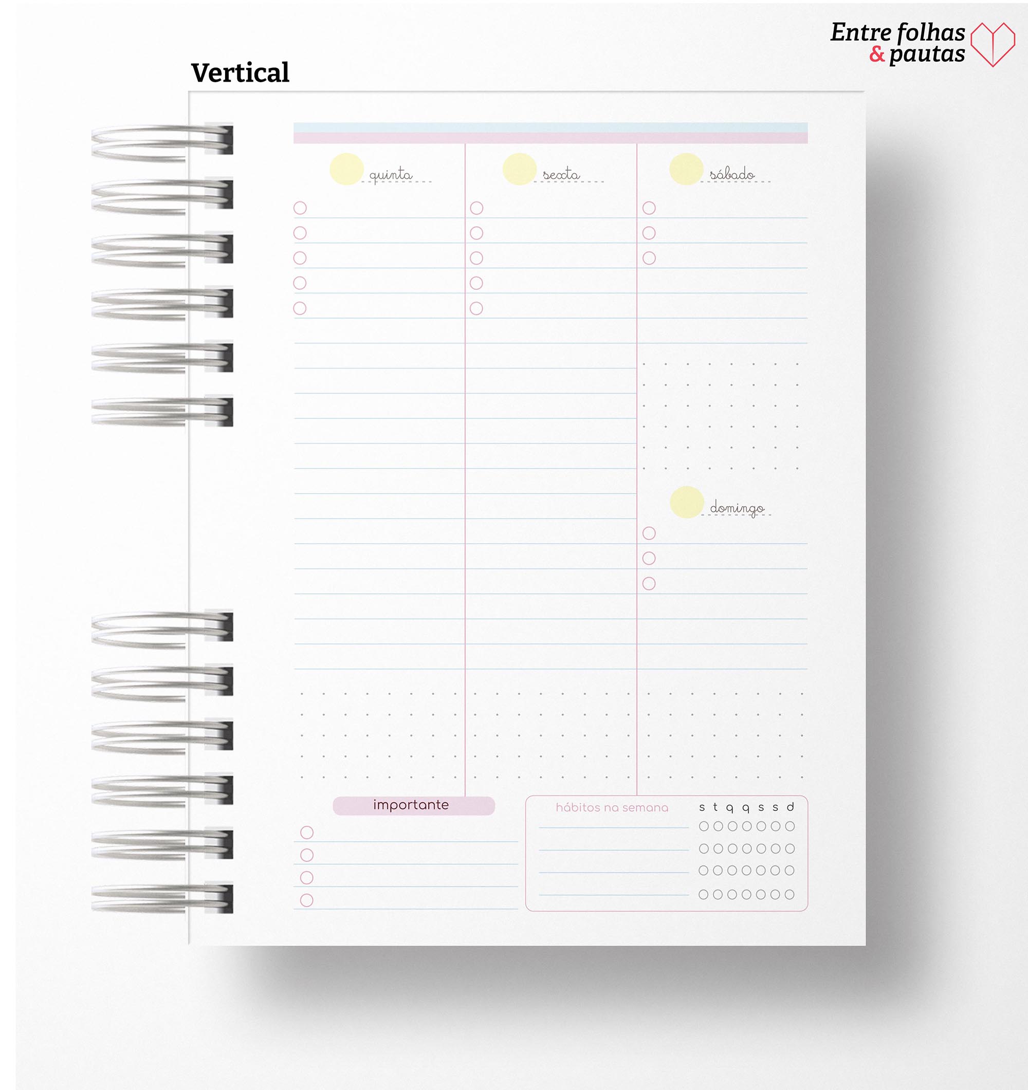O planner foi feito para atender seu dia a dia corrido. Em apenas alguns minutos, você consegue preencher e ver todos os compromissos do mês e da semana de forma clara. Além de você ter controle dos seus gastos mensais, daquela série que você quer assistir e até uma roda da vida para seu autoconhecimento.