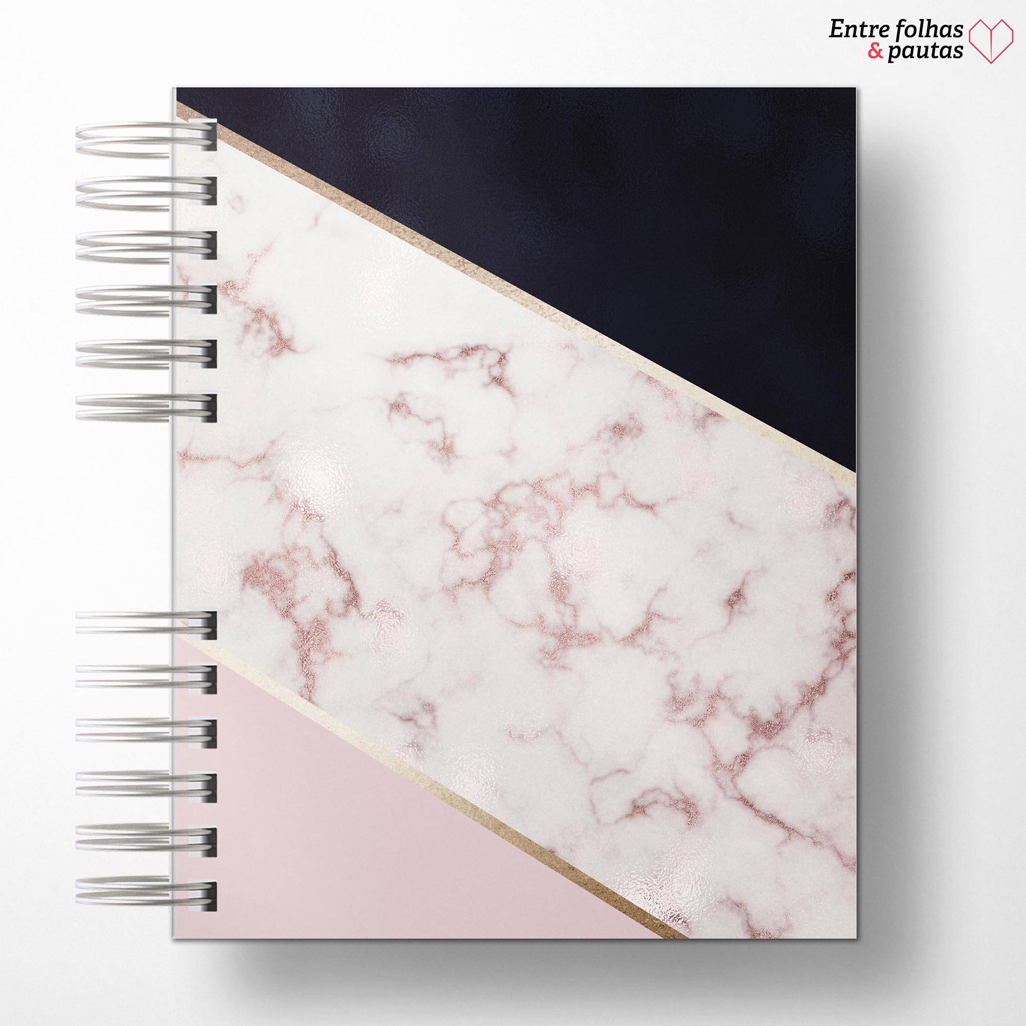 • Com elástico, marca página e bolsinho interno